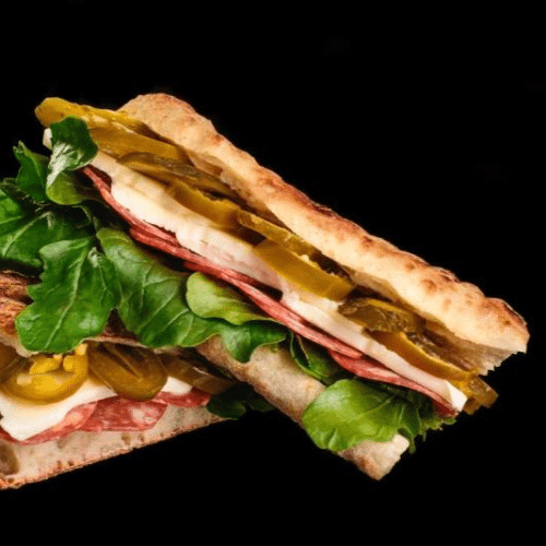 Kanapka z naszego autorskiego pieczywa a w środku: rukola, mozzarella fdl, salami piccante, ogórek kiszony, jalapeno. Sos do wyboru: firmowy, pikantny majonez, pomidorowy, czosnkowy. Sos podaj w uwagach do zamówienia :)